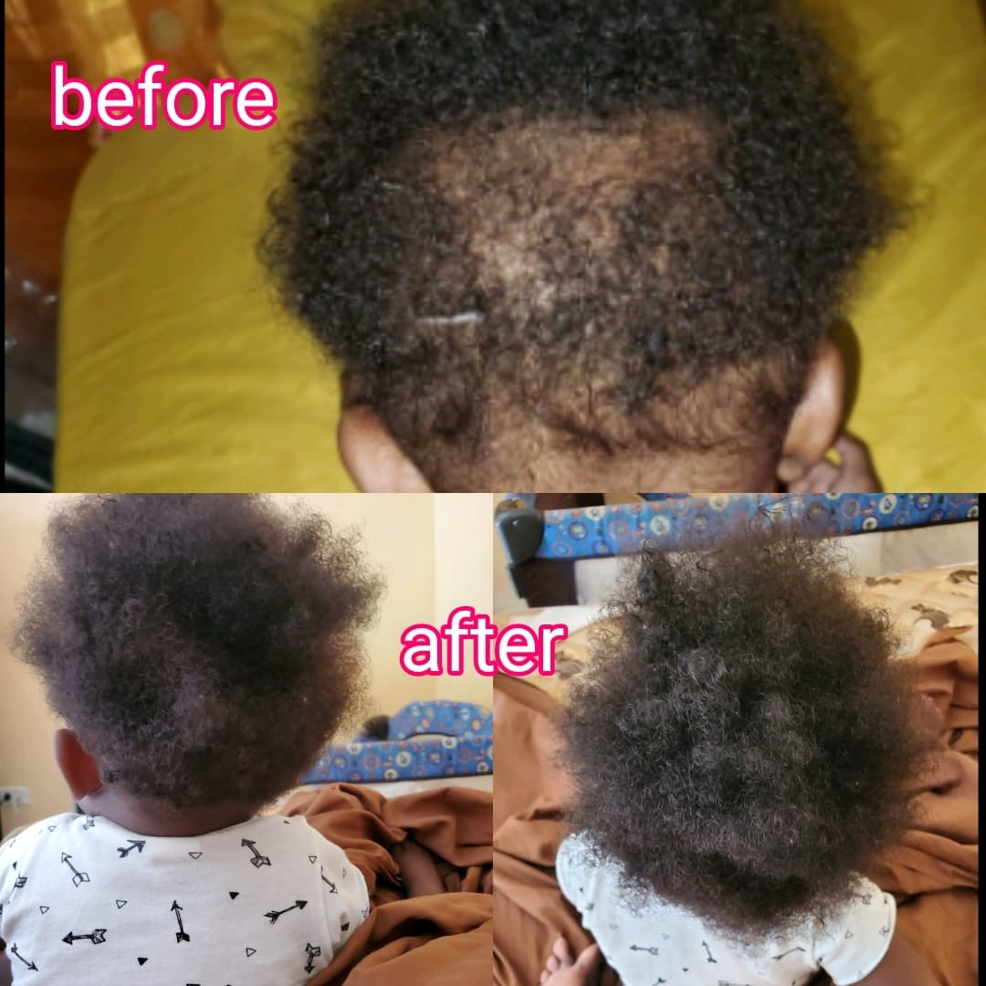 I got the rosemary oil, herbal infused hair growth oil and hair butter for my 5 month old and they work. It’s been just 10 days and I can already see the hair volume increasing and new growth on the bald spots.